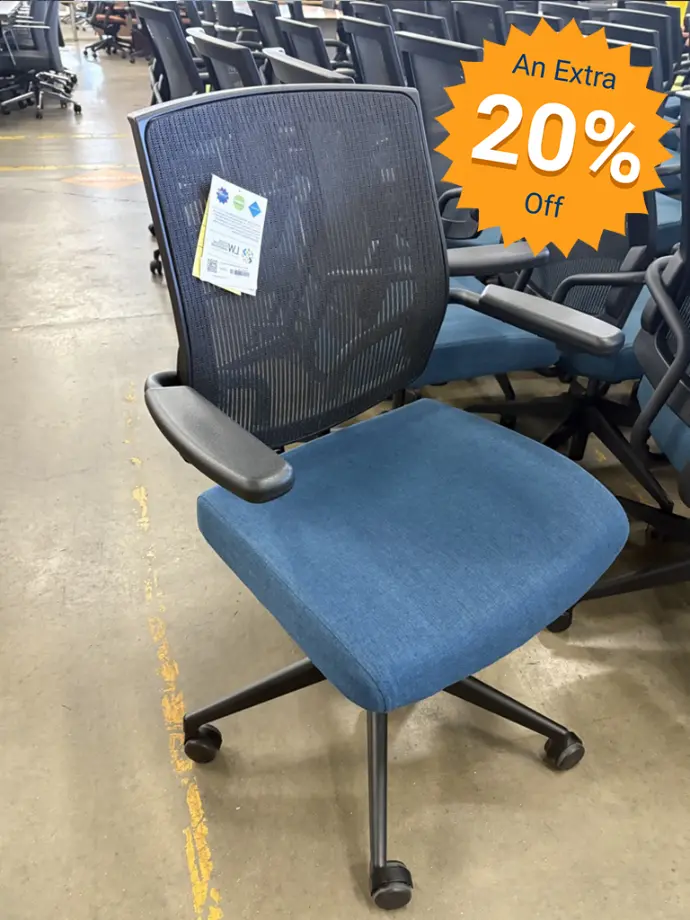 Take an additional 20% off the tagged price on all in-stock, pre-owned office furniture. That includes desks, seating, storage, and more—ready to take home or deliver without long lead times.